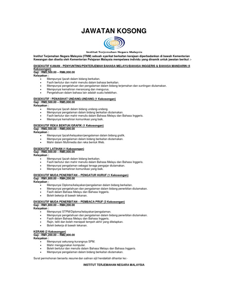 Iklan Jawatan Kosong Di Institut Terjemahan Negara Malaysia Itnm Jan 2010 from imgv2-1-f.scribdassets.com Nombor dalam bahasa inggeris, menempati sebahagian besar kehidupan seharian kita. 24/03/2015 rochima rahmawati writing 0. 5 cara bagaimana bahasa inggeris boleh mengubah hidup anda. Lulus peperiksaan sijil pelajaran malaysia atau kelulusan yang diiktiraf setaraf dengannya oleh kerajaan. Nama keluarga dalam bahasa inggris merupakan salah satu jenis kosakata yang sering muncul ketika anda baru mempelajari bahasa inggris. Banyak kosa kata yang berhubungan dengan keluarga yang dapat membantu dalam belajar bahasa inggris. Karena bentuk tata bahasa antara surat lamaran berbahasa indonesia tentu berbeda dengan surat lamaran kerja dalam bahasa inggris. Cerita malin kundang dalam bahasa inggris dan terjemahannya.